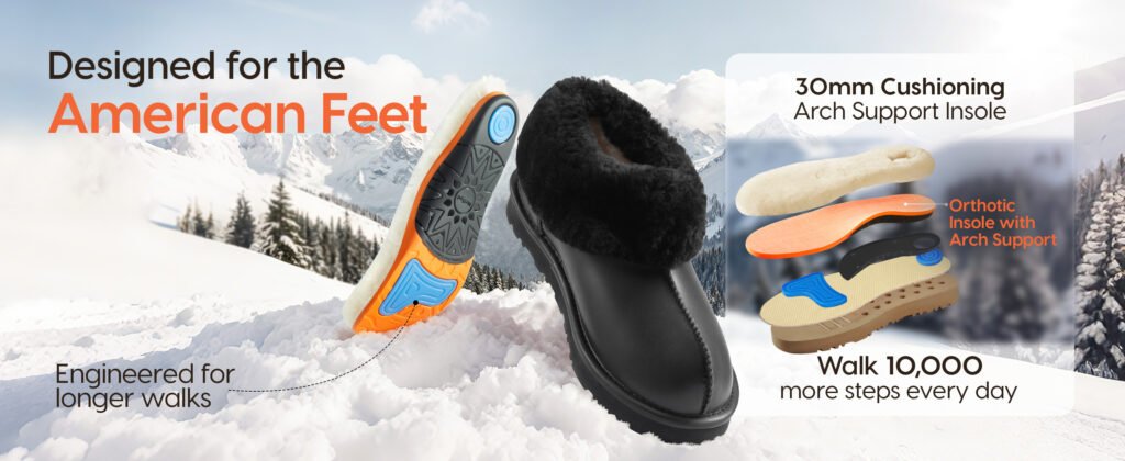 2、Ultimate Comfort & Warmth: Customers rave about the cloud-like comfort of shearling booties, featuring excellent arch support that cradles the foot. The premium 18mm australian sheepskin lining keeps feet warm yet breathable, while helping to prevent odor, perfect for post-surgery recovery or all-day wear