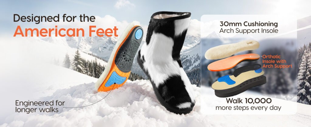 4、Exceptional Warmth & Comfort: Experience ultimate coziness with these fur snow boots, designed to keep your feet warm in cold weather without overheating. The soft interior feels like walking on clouds, offering all-day comfort whether you’re indoors or outdoors. Perfect for daily wear during winter months