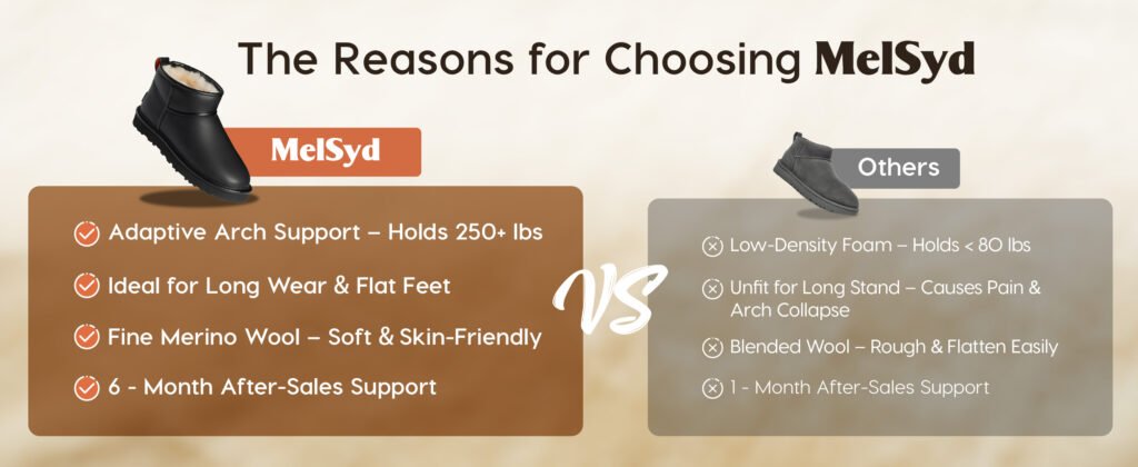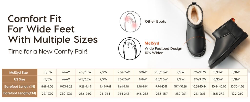 • Proven Durability‌: MelSyd Genuine Suede Mini Boots for Women Winter Fuzzy Snow Boots Short Ankle Boot with Fur Lined Stress-tested for 200+ miles of concrete walking (equivalent to 3 months of NYC commuting), with reinforced stitching at high-wear zones  “Black UGG Boots Reimagined: Smooth Leather Meets 30mm Arch Support by MelSyd” – melsyd