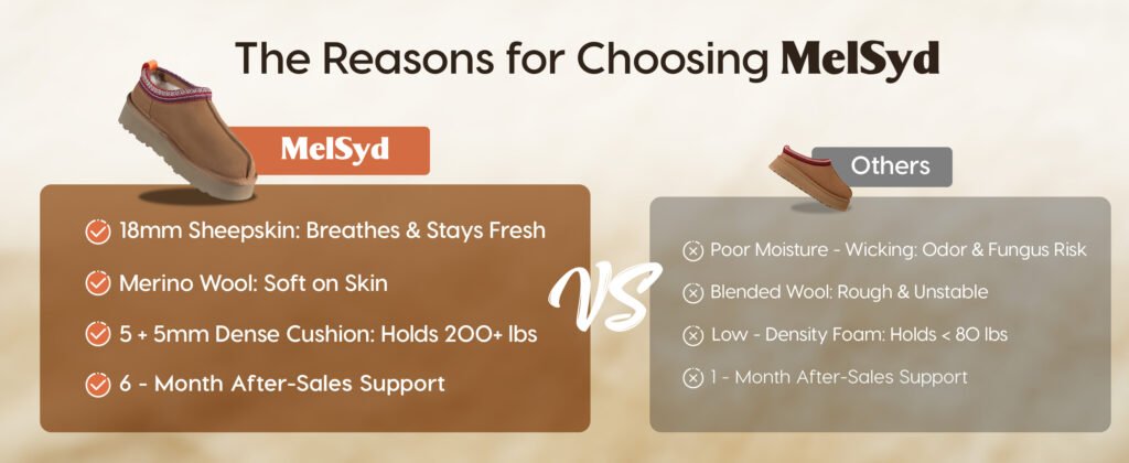 5、Double waterproof & stain-resistant: All of MelSyd fuzzy winter boots have undergone enough waterproof treatment, water repellent spray providing an invisible barrier to protects on leather boots against spills, stains, dirt, to make fur lined boots for women easily to take care of