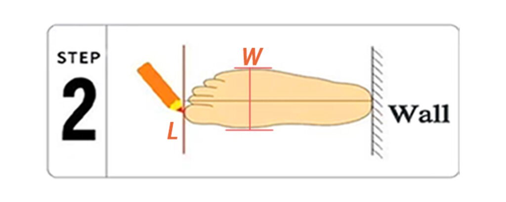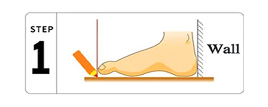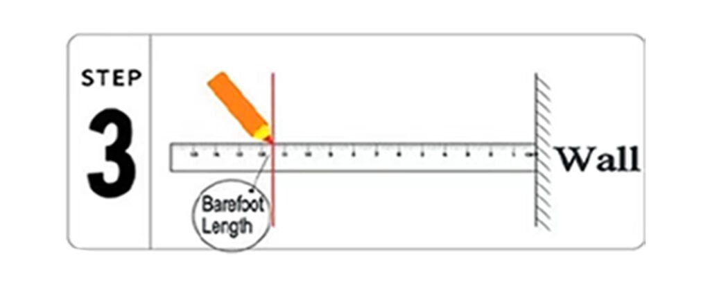 Step 3: Measure the final distance between the wall and your longest toe in inches or centimeters to find your size in our chart.