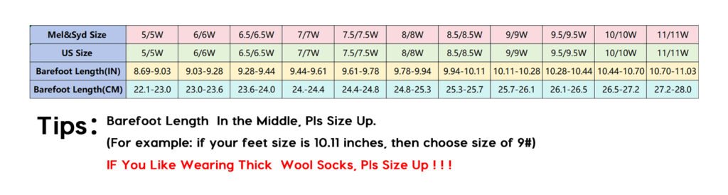 We recognize that the unique shape of your feet may sometimes result in an imperfect fit despite careful measurement. MelSyd offers Free Returns and Exchanges within the U.S. to ensure you find the perfect stride.